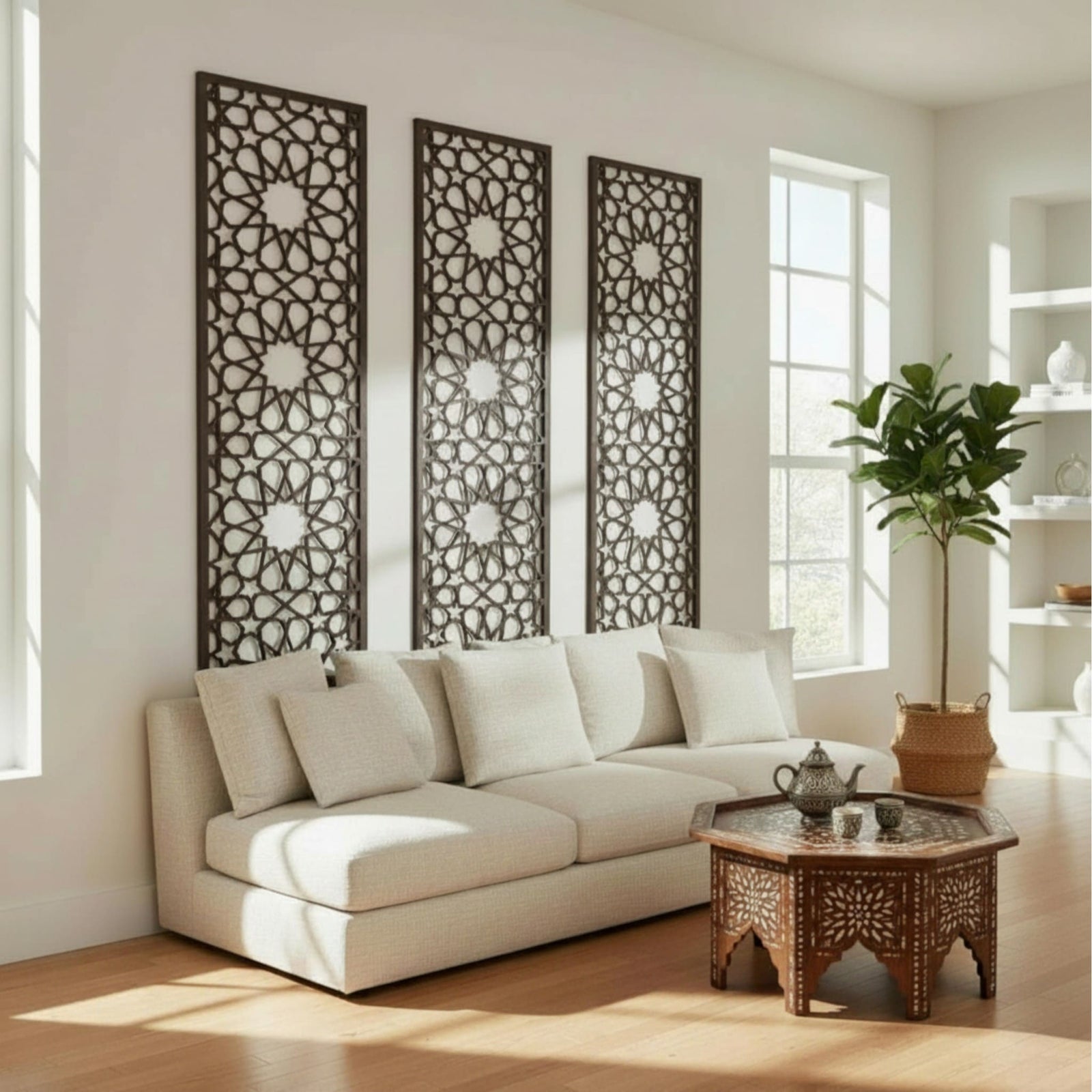 Der Arabisches Gitterwerk Sie sind nicht nur Tradition, sondern auch ein Symbol für die Verschmelzung von Geschichte und Moderne. Während die ursprünglichen Entwürfe in der islamischen Architektur einen praktischen Zweck erfüllten, sind sie heute... Gitter Sie haben sich zu hochgeschätzten Dekorationselementen entwickelt. Gitterwerk der Alhambra Sie sind ein Paradebeispiel dafür, wie Tradition und Moderne perfekt verschmelzen können, indem sie ihr Wesen bewahren, sich aber neuen ästhetischen Anforderungen anpassen.