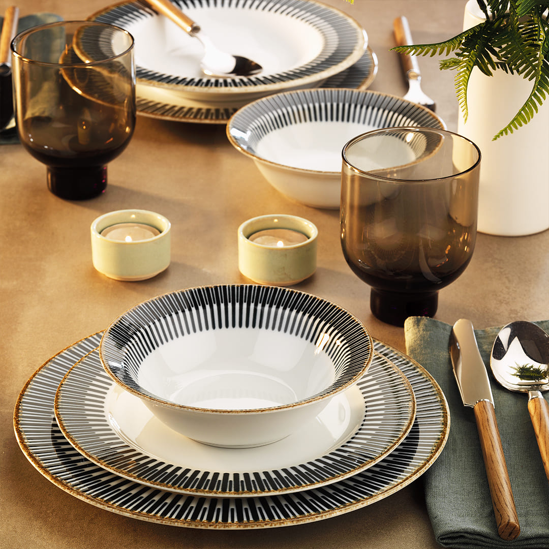 Die Portland-Kollektion türkischen Geschirrs besticht durch ihr modernes und avantgardistisches Design und zeichnet sich durch einen natürlichen, frischen Stil aus. Die Marke ist bekannt für die Langlebigkeit ihres fleckenabweisenden Geschirrs.