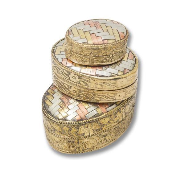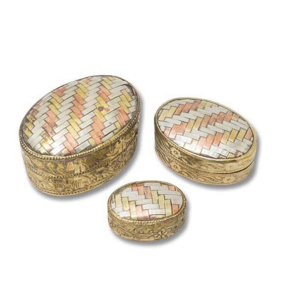 Set mit 3 ovalen geflochtenen Kupfer-Schmuckkästchen